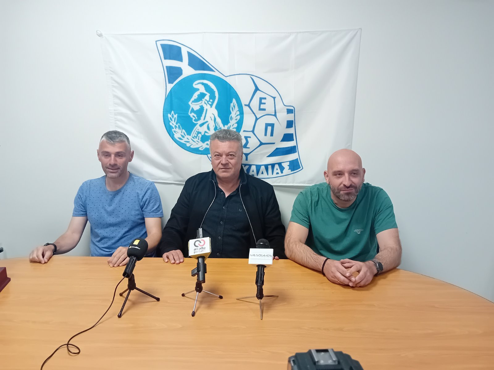 Στη συνεντευξη Τύπου έδωσε το παρών ο πρόεδρος της ΕΠΣ Αρκαδίας, Σταύρος Γεωργόπουλος και από τους φιναλίστ μίλησαν τόσο οι προπονητές Γιώργος Σπανακης - Γιάννης Καδάς, όσο και οι αρχηγοί Ευγένιος Πετρόπουλος - Τάκης Πολυμενάκος.