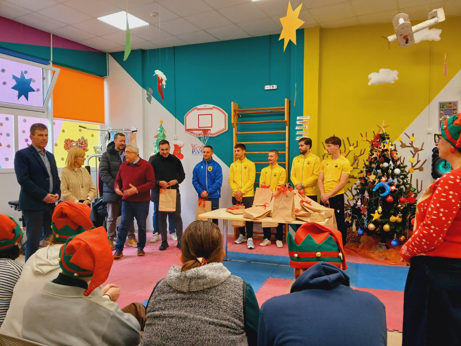 Στο πλαίσιο της εορταστικής περιόδου η ΑΕΚ Τρίπολης έδειξε το κοινωνικό της πρόσωπο, καθώς μέλη της διοίκησης, προεξέχοντος του προέδρου Παναγιώτη Βαλασόπουλου και μέλη του ποδοσφαιρικού τμήματος επισκέφθηκαν το ΚΔΑΠ ΑΜΕΑ του Δήμου Τρίπολης.