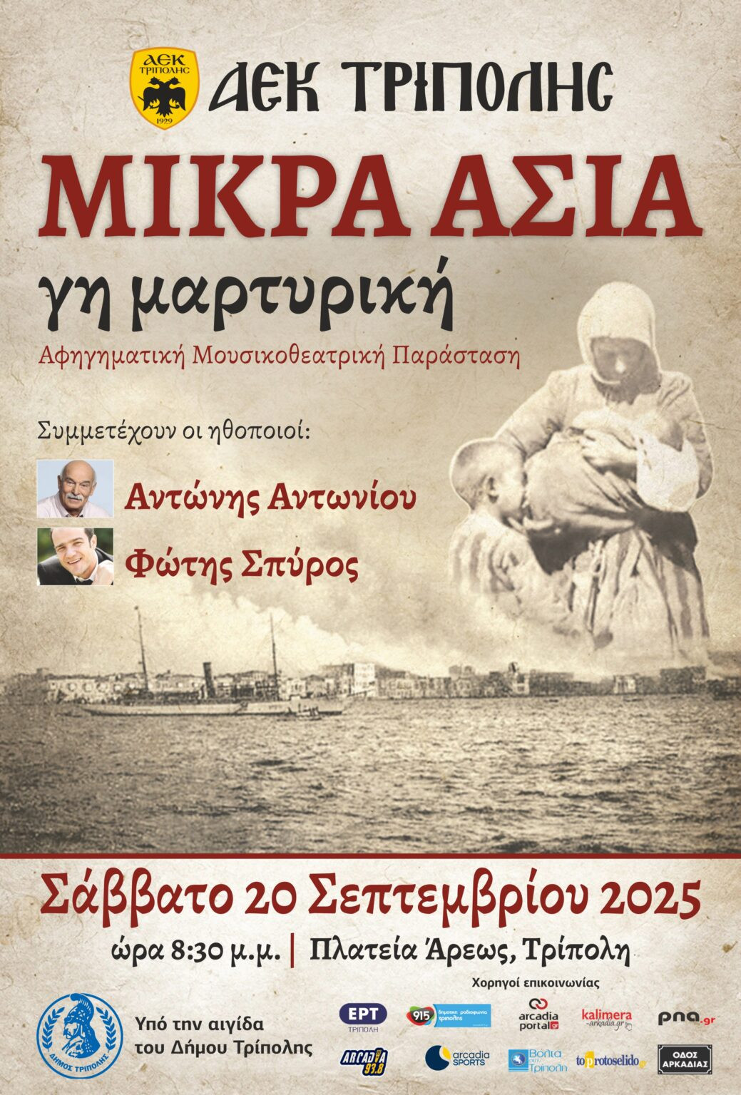 Η ΑΕΚ Τρίπολης διοργανώνει την αφηγηματική μουσικοθεατρική παράσταση "Μικρά Ασία γη μαρτυτική"
