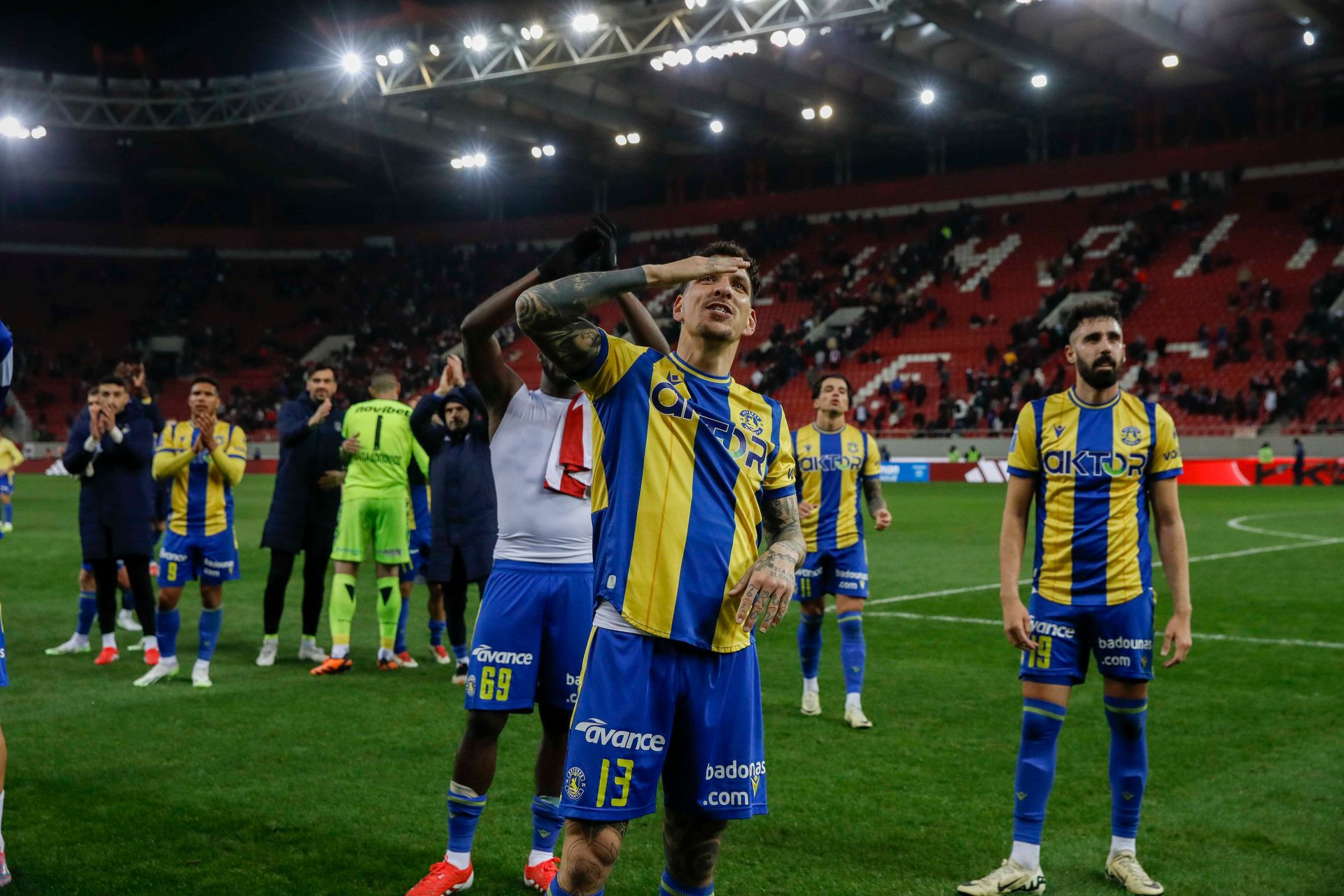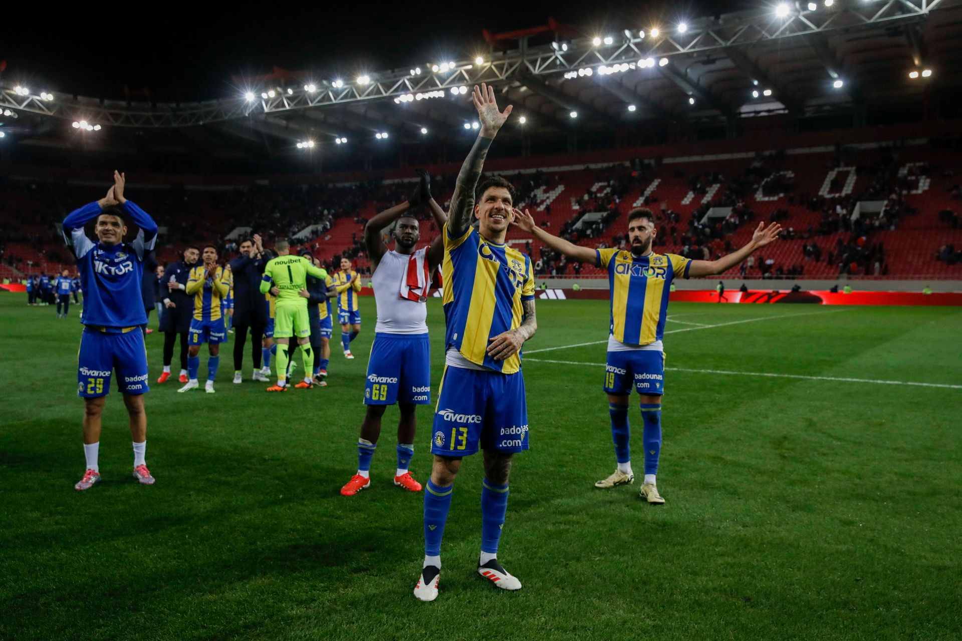 Μετά το τελευταίο σφύριγμα και τον παλικαρίσιο βαθμό, οι παίκτες του ASTERAS AKTOR κατευθύνθηκαν στο πέταλο όπου ήταν συγκεντρωμένοι οι φίλοι των "κιτρινομπλέ" και τους ευχαρίστησαν για την υποστήριξή τους.